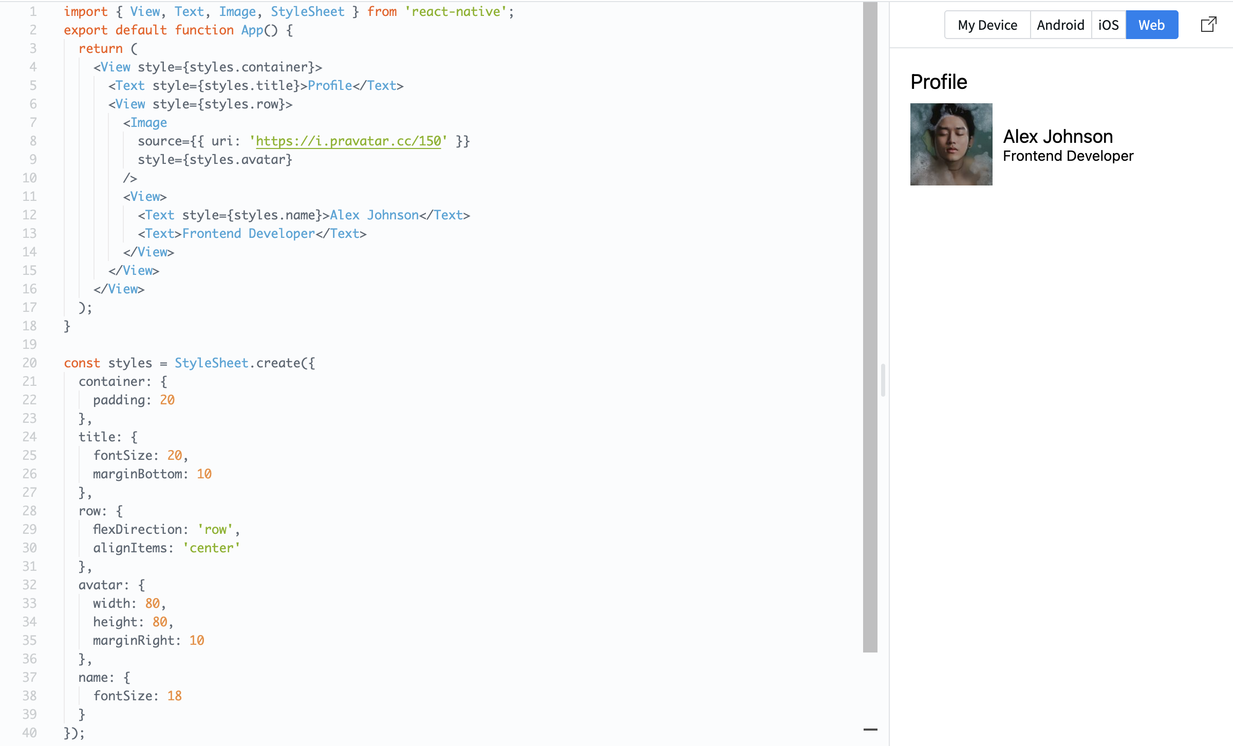 <Text style={styles.name}>Alex Johnson</Text>