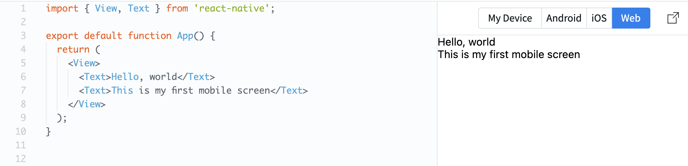 <Text>This is my first mobile screen</Text>