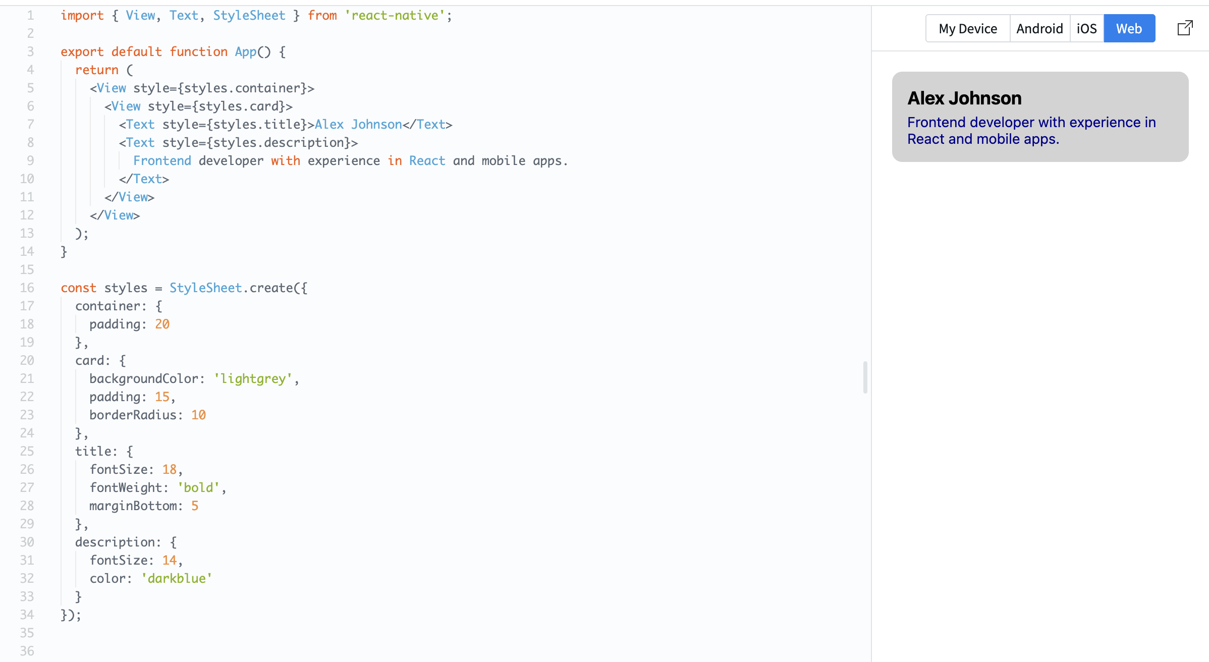 <Text style={styles.title}>Alex Johnson</Text>