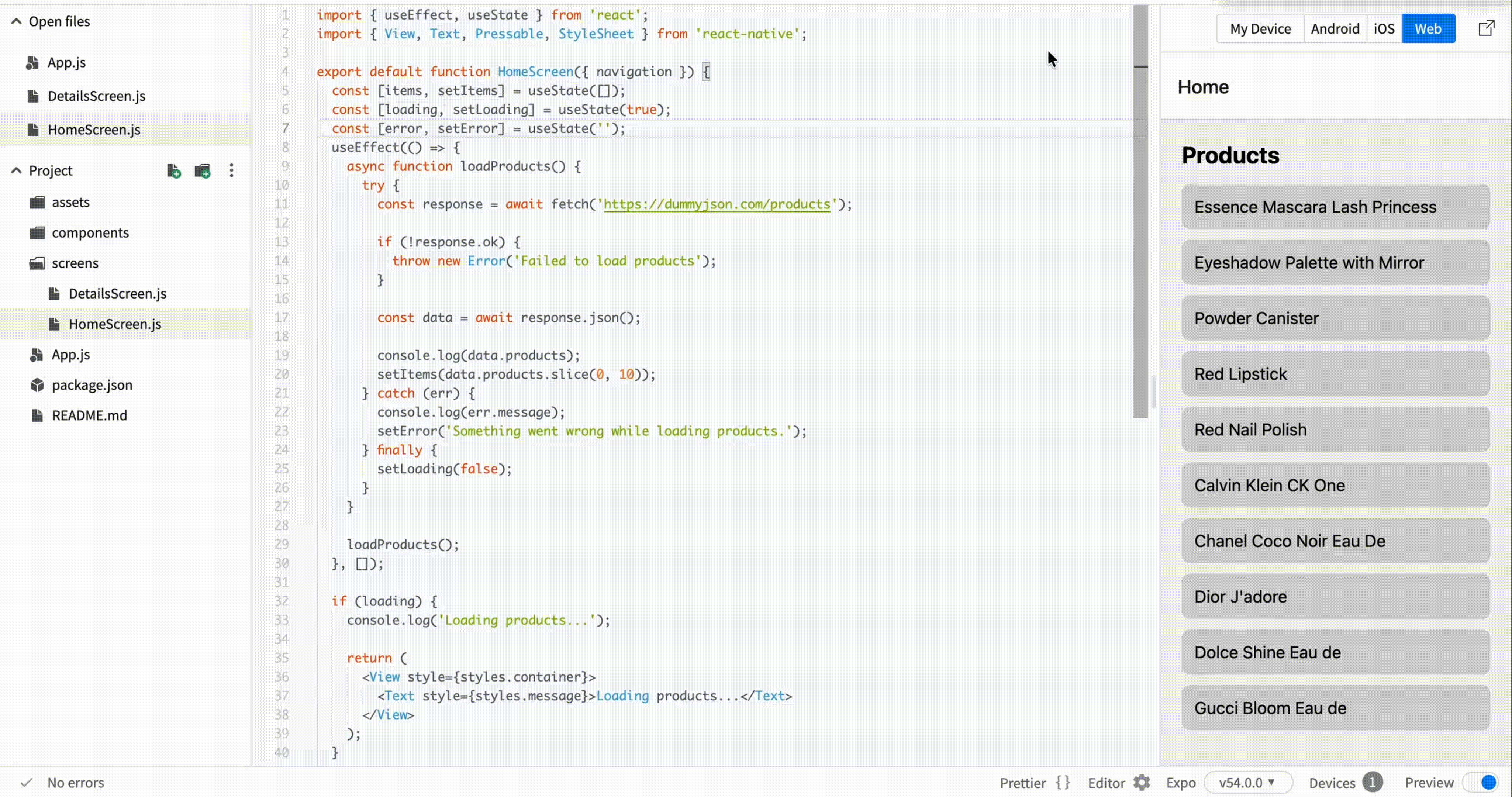 Update your HomeScreen.js: