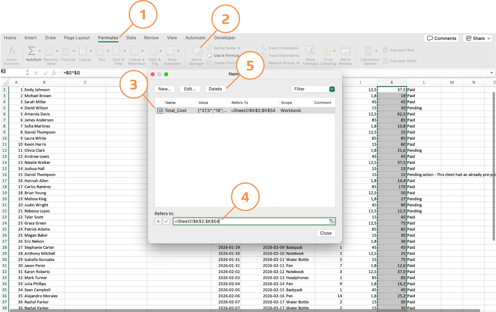 - Gå til Formler-fanen → Navnestyring;