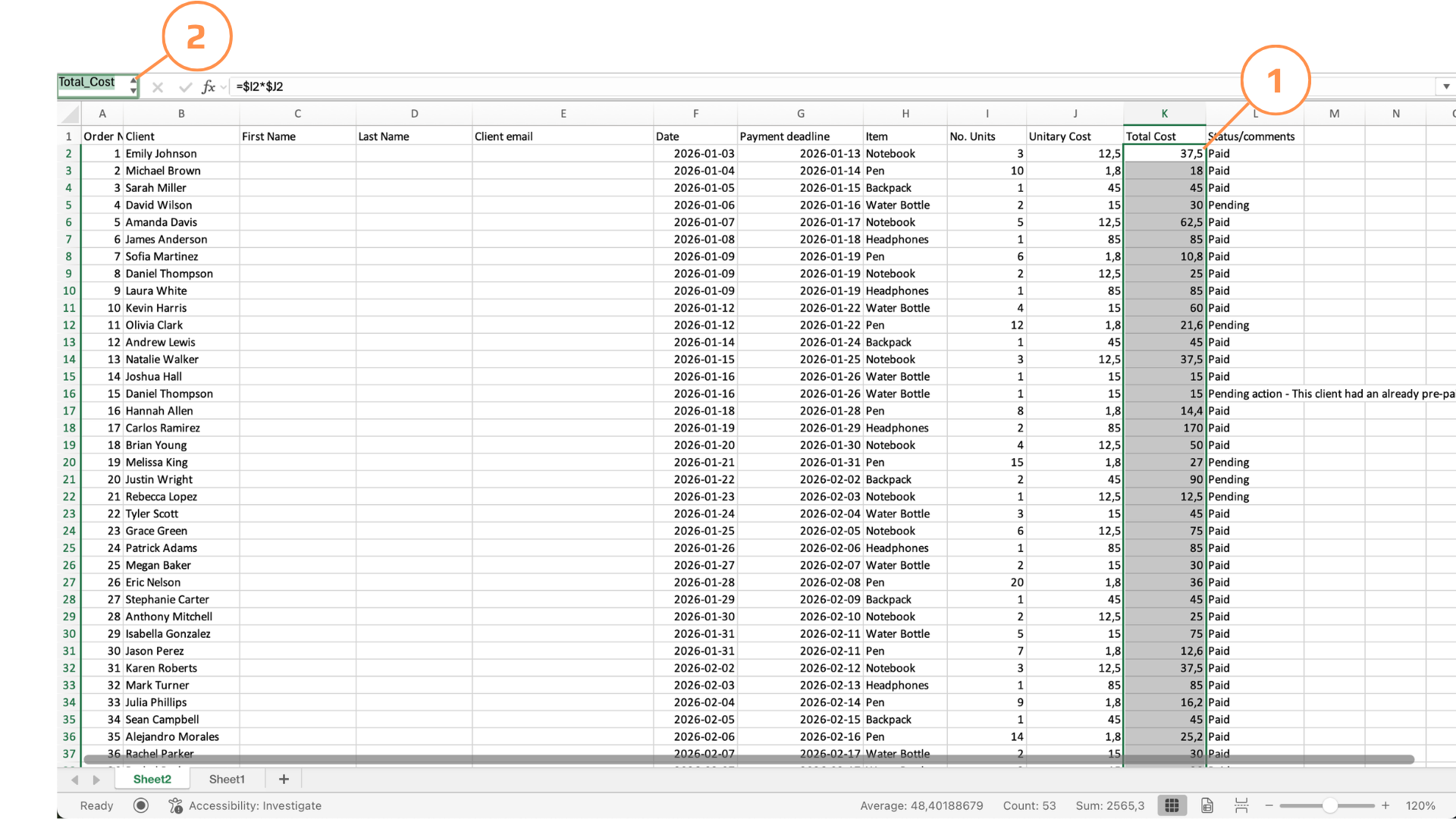 Eksempel: Total_Cost i stedet for K2:K54.
