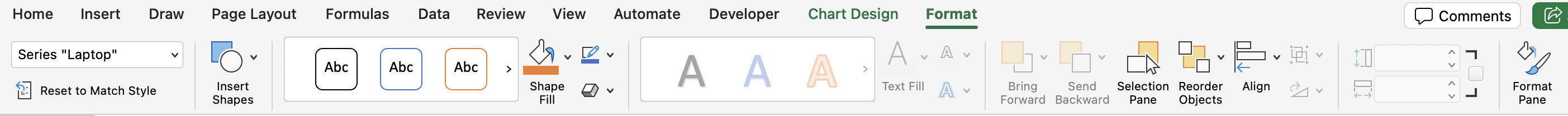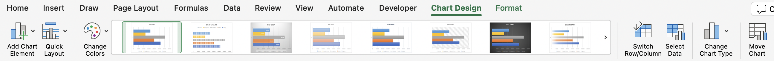 Når et diagram er valgt, vises to kontekstafhængige faner i båndet: Diagramdesign og Format.