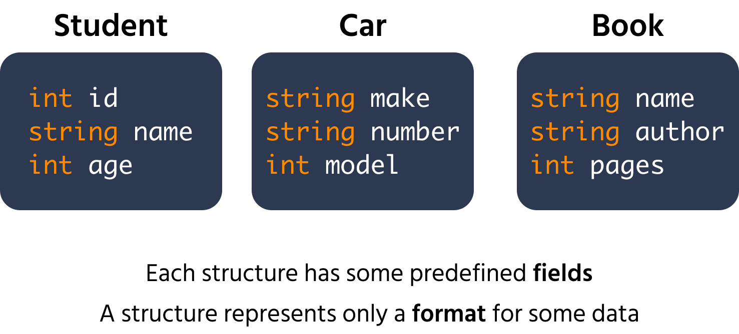 Es ist wichtig zu beachten, dass die Struktur selbst keine Daten speichern kann, da sie lediglich eine Blaupause ist. Die mit ihr erstellten Objekte sind jedoch in der Lage, Daten zu speichern.