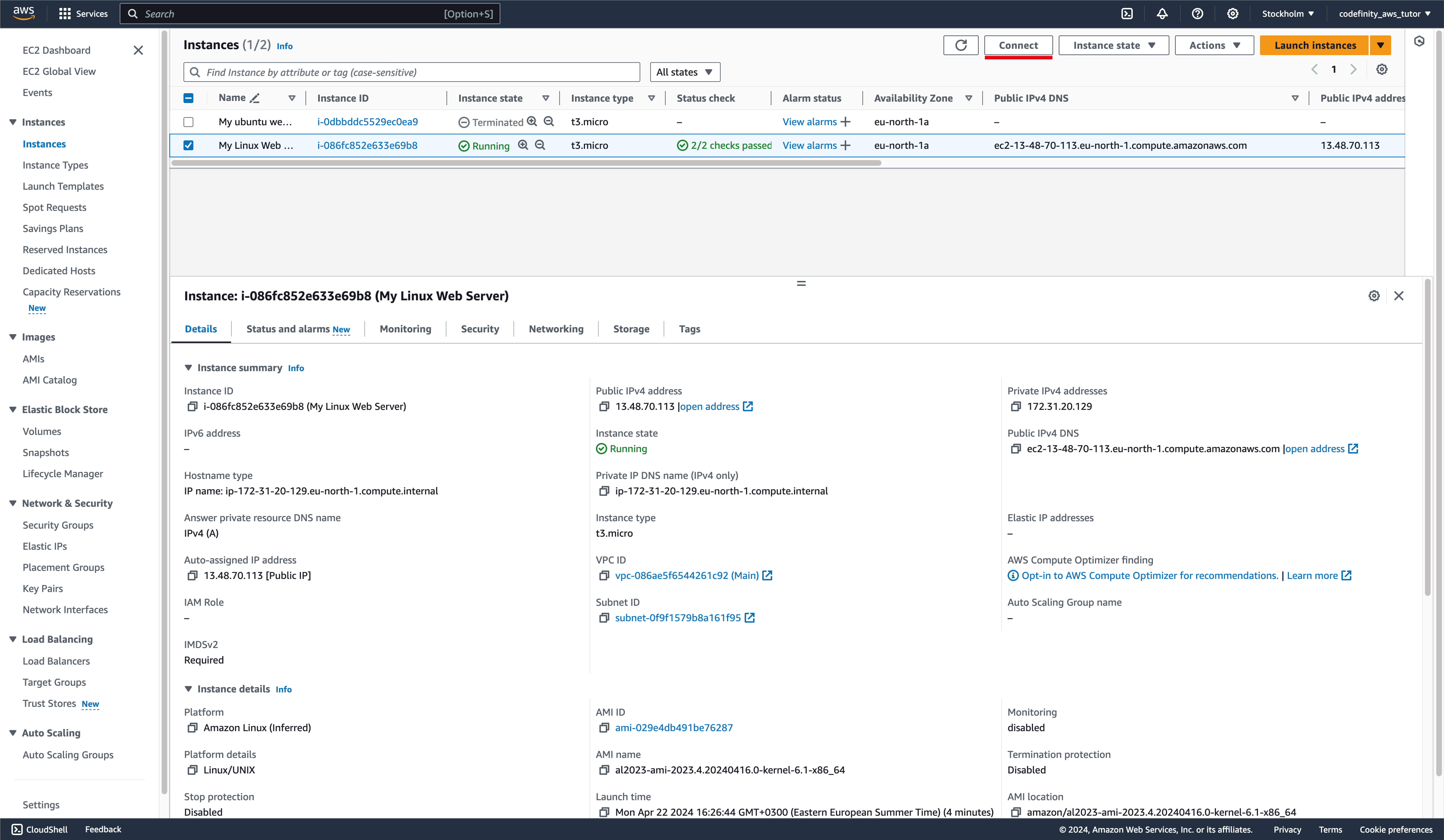 Hemos creado y configurado una instancia en AWS EC2; ahora, veamos cómo podemos conectarnos a la instancia y comenzar a trabajar con ella.