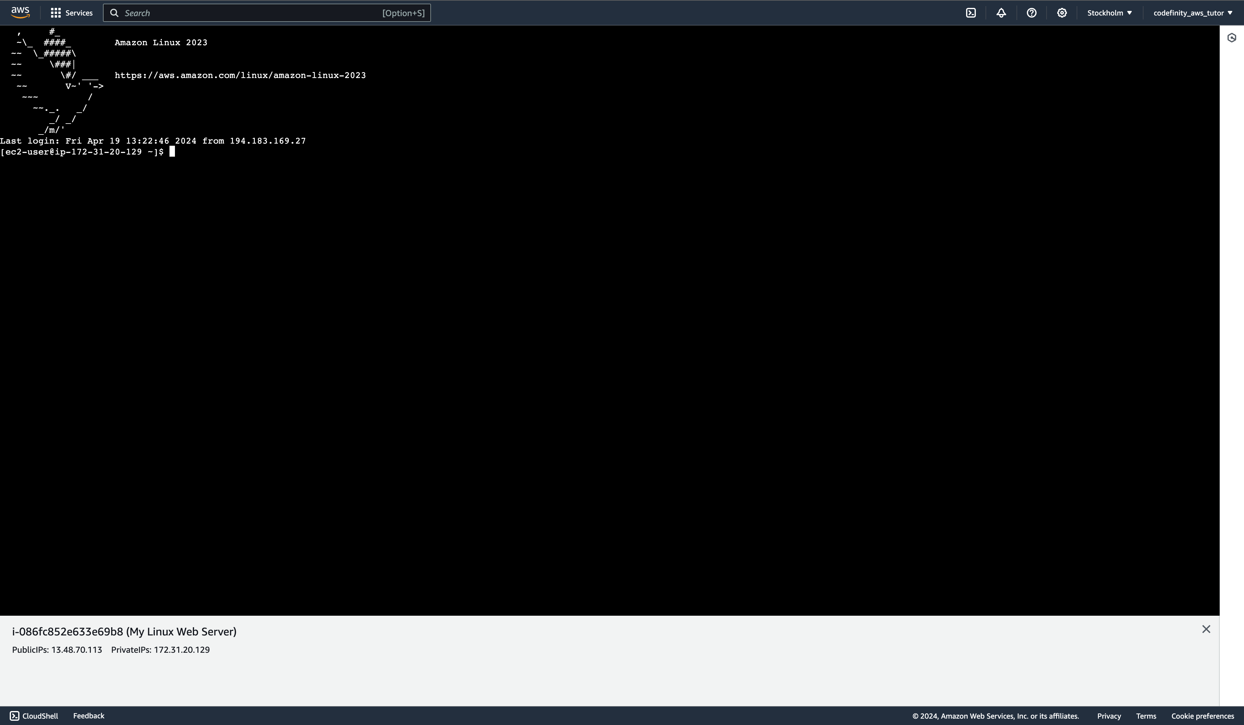 El primer método es la conexión a la instancia mediante el terminal de su dispositivo. Con este método, se gestiona la instancia de forma remota a través del terminal de su máquina. Estoy trabajando en MacOS, por lo que mostraré el proceso a través de su consola, pero tenga en cuenta que no importa qué dispositivo se utilice, ya que la mayoría de las veces se gestiona un servidor Linux, donde la plataforma no marca diferencia.