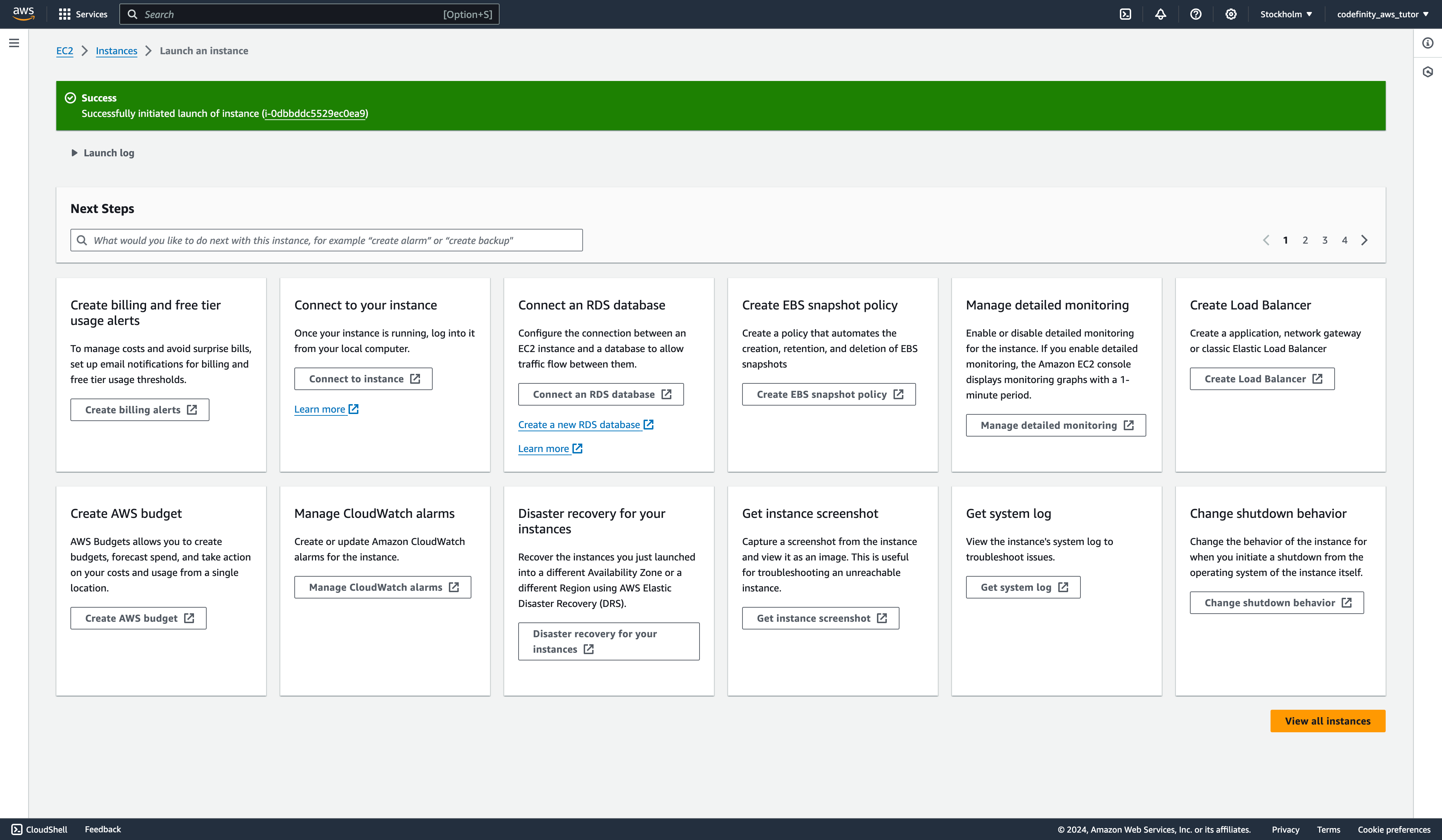 Can you explain more about how to connect to the EC2 instance after it's launched?
