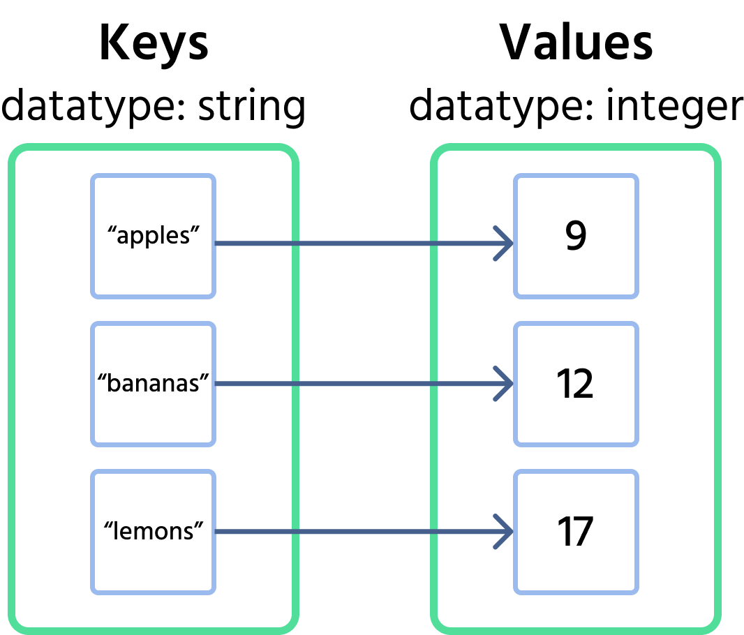 Existe uma estrutura semelhante chamada Dicionário, na qual temos pares de chave-valor. Enquanto um índice é sempre um número inteiro, uma chave pode ser de qualquer tipo de dado básico, porém geralmente é uma string